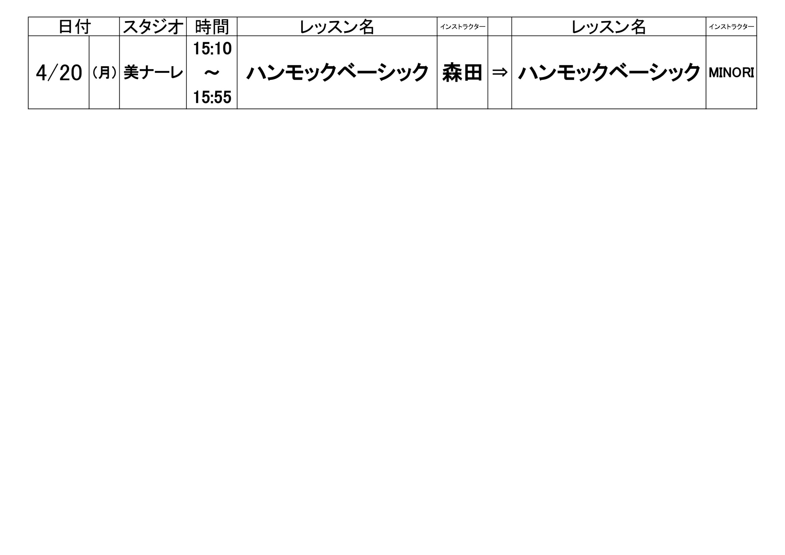 レッスン代行のお知らせ 3/25更新